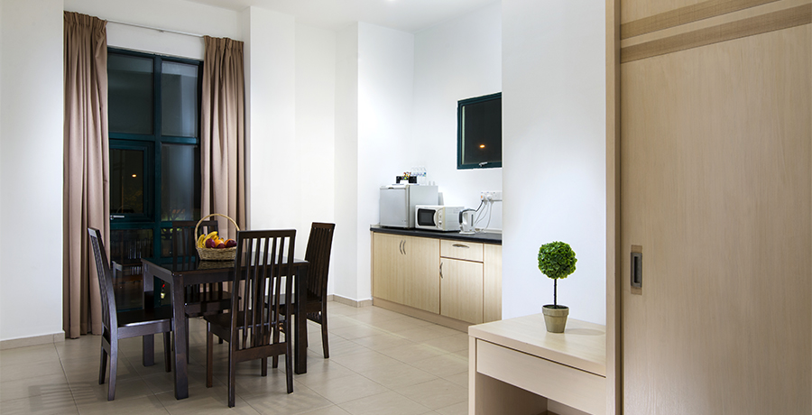 - Dapur kecil dengan microwave dan kulkas mini